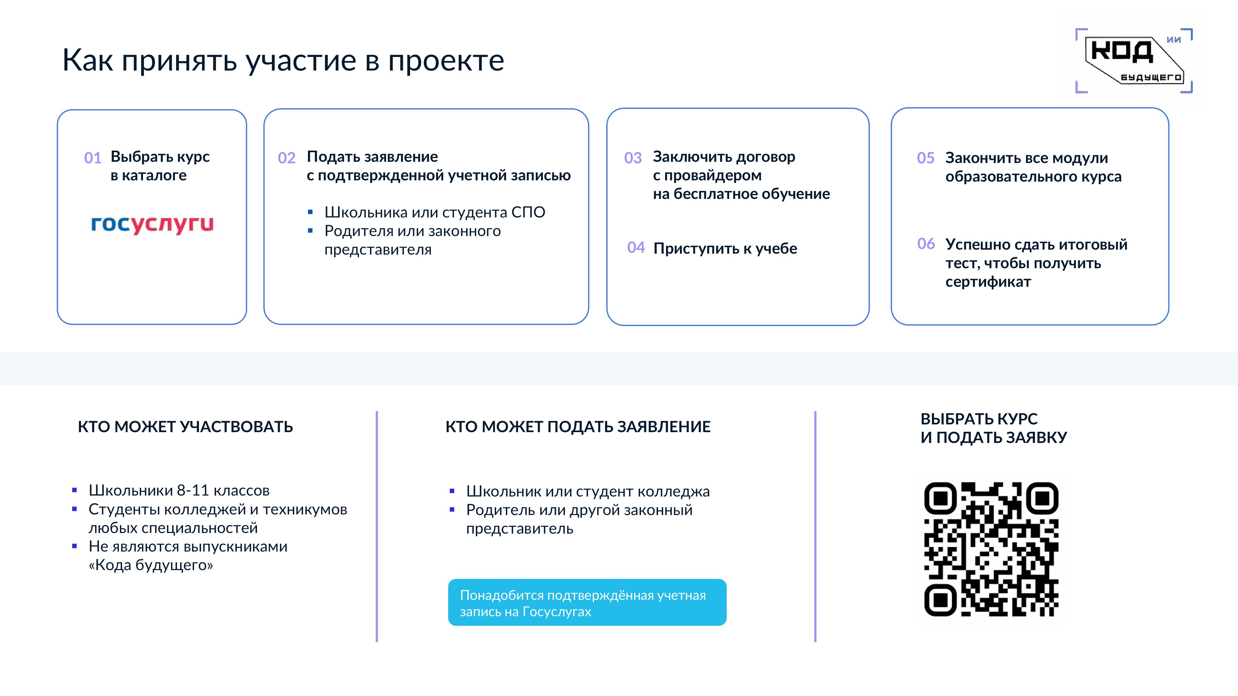 Ознакомиться с полным перечнем образовательных организаций (провайдеров) и курсов, а также подать заявление на участие в Проекте можно на сайте проекта на ЕПГУ по адресу https://gosuslugi.ru/ai.